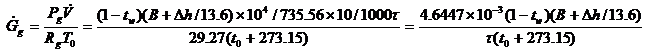 5. 根據(jù)流量計(jì)出口空氣的干球溫度和濕球溫度,從濕空氣的干濕圖查出含濕量(d,克/公斤干空氣),并根據(jù)下式計(jì)算出水蒸氣的容積成分: