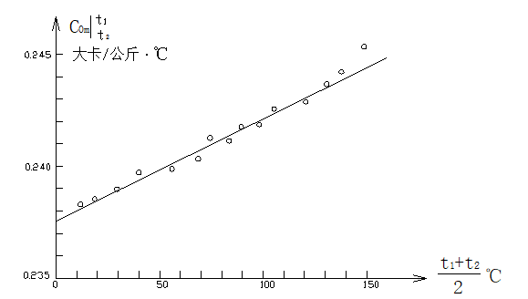 為縱坐標(biāo)(如圖三),則可根據(jù)不同的溫度范圍內(nèi)的平均比熱確定截距a和斜率b,從而得出比熱隨溫度變化的計(jì)算式。