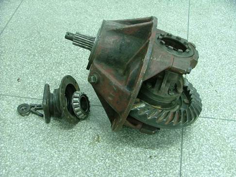 第三步:拆下主動(dòng)雙曲線齒輪連接凸緣及油封座、錐齒輪軸承座,拆下主動(dòng)雙曲線齒輪。