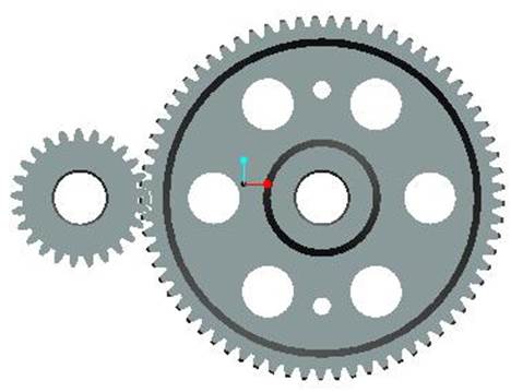 1、 計(jì)算齒輪傳動(dòng)比:其中主動(dòng)齒輪分度圓直徑為50MM,從動(dòng)齒輪分度圓直徑為84MM,如圖3-2所示: