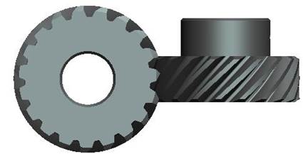 一對外嚙合斜齒圓柱齒輪的正確嚙合條件是:齒輪副的法面模數(shù)和法面壓力角分別相等,而且螺旋角大小相等,旋向相反,即