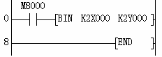 (4)例程說明:將M0~M4的數(shù)據(jù)送到輸出端Y0~Y4。