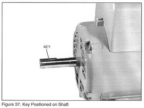 H.將鍵從制動器輪轂的鍵槽內(nèi)取出,重新放入電機軸上的鍵槽內(nèi),將之放置與軸的末端平齊的位置,如圖37所示