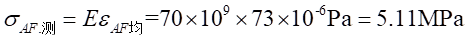 載荷F作用在試件(見圖8-1)的對稱軸線上時,A-A截面有軸力,有彎矩,由于對稱條件沒有剪力。方框試件的彈性模量為70GN/m2。軸力引起的正應(yīng)力為: