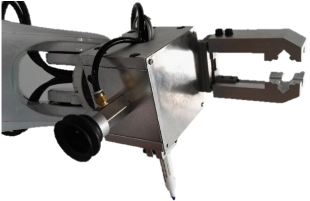 使用多功能實訓夾具的優(yōu)點是只需要通過變換機器人手爪姿態(tài)即可實現(xiàn)對模擬應用環(huán)境的模擬操作與編程,外形尺寸:120*120*180mm,重量2KG;具備吸緊工件實現(xiàn)碼垛功能;實現(xiàn)夾持物料模擬上下料的功能,同時具有軌跡畫筆。