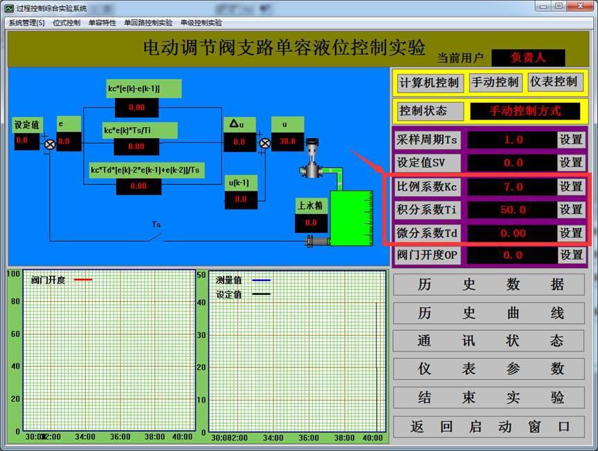 7、選擇單回路控制實(shí)驗(yàn)的電動(dòng)閥支路單容液位控制實(shí)驗(yàn)。