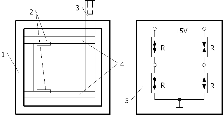 1─外殼 2─電阻應(yīng)變片 3─測(cè)桿 4─等截面懸臂梁 5─面板接線圖