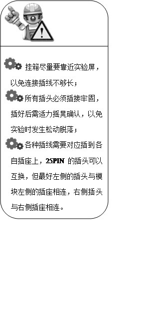 8、 模塊安放到實驗機(jī)頭上。將①中已經(jīng)連接好的實驗插線整理好,將長出的部分合理放入機(jī)頭內(nèi)側(cè),以免模塊掛上時壓住插線。