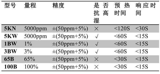 表2-2 二氧化碳傳感器探頭參數(shù)與選型