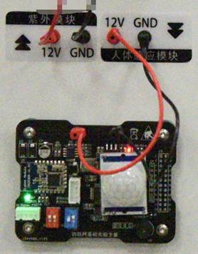 圖5-10 人體紅外模塊實(shí)物圖 圖5-11 人體紅外模塊實(shí)物接線圖