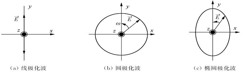 平面波電場(chǎng)兩個(gè)分量取不同振幅和相位時(shí),空間在一固定點(diǎn)處的合成電場(chǎng)矢量端點(diǎn)的軌跡,從而確定其極化狀態(tài)。