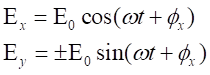 如果Ex和Ey的振幅相等,即Exm=Eym=E0,而相位差p/2,即