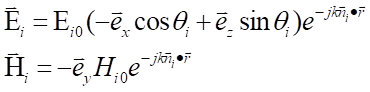 取坐標(biāo)系如圖。能與上面類似的處理,可得此時(shí)媒質(zhì)1中的合成波的電磁場(chǎng)表示式為