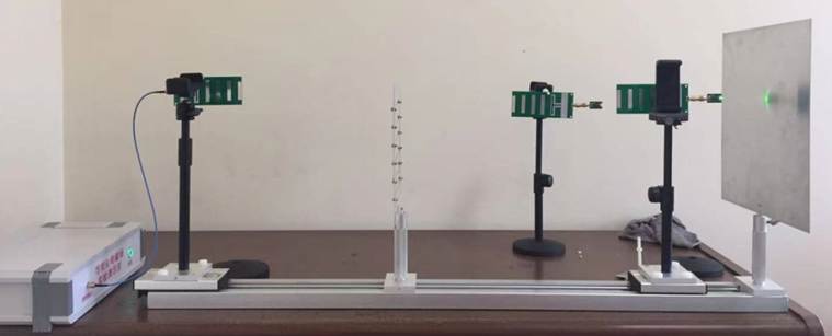 3、由于實(shí)驗(yàn)臺(tái)長(zhǎng)度與波長(zhǎng)相比擬,測(cè)試為近場(chǎng)條件,空間功率隨著與天線的距離分布并不均勻,所以在不同測(cè)試點(diǎn)測(cè)得的極小值差異很大。判斷極值的方式通過人工推移接收架同時(shí)觀察軟件顯示電壓幅值同步來完成。綜合以上幾點(diǎn),表明新型實(shí)驗(yàn)系統(tǒng)拓寬了系統(tǒng)的頻率輸出范圍,給實(shí)驗(yàn)提供了更多可用頻點(diǎn),提高接收數(shù)據(jù)觀察效率,起到規(guī)劃的作用。