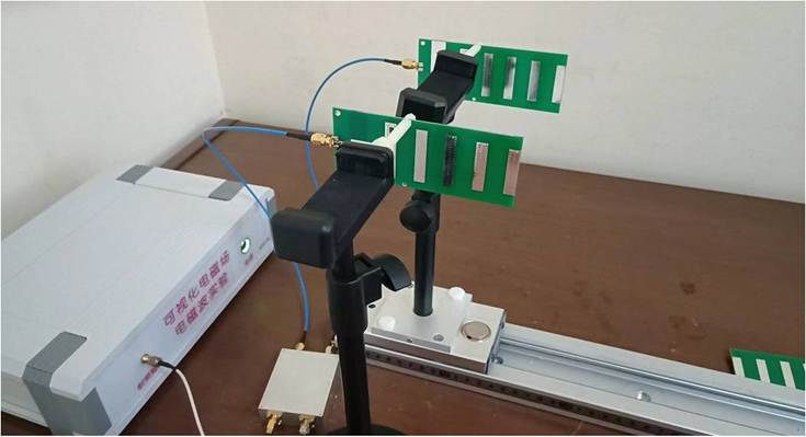 2)將八木天線安裝到旋轉(zhuǎn)支架上,將其垂直放置,移動到距離發(fā)射天線80~90cm處。