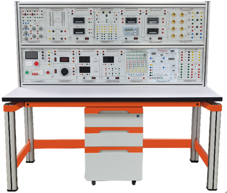 網(wǎng)絡(luò)化基礎(chǔ)電工實(shí)驗(yàn)平臺(tái)由實(shí)驗(yàn)桌、實(shí)驗(yàn)臺(tái)架、存儲(chǔ)柜、實(shí)驗(yàn)掛箱組件、配件等組成。
