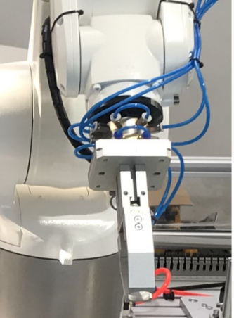 4、工業(yè)機(jī)器人末端安裝電磁吸盤,可匹配多種夾具。同時至少配備4種工裝夾具,夾具有專門的工具架安放,每個夾具的負(fù)重至少在3kg以上。按照實訓(xùn)項目的要求可分別配合工業(yè)機(jī)器人完成物料夾取、軌跡模擬、寫字繪圖等工作。