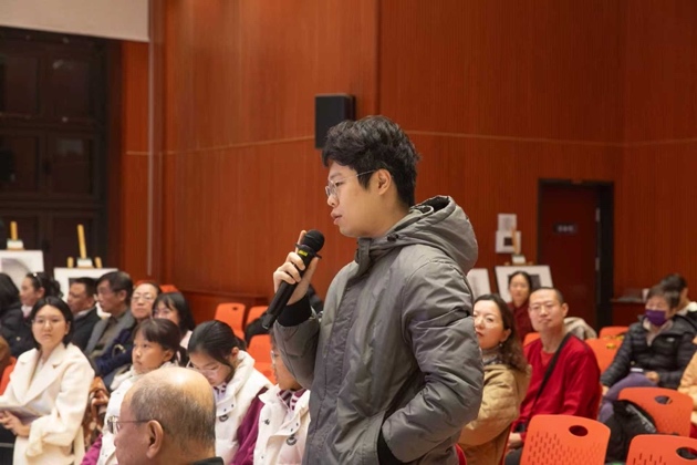 在聽眾互動環(huán)節(jié),有人詢問“草葉”意象的內(nèi)涵,李印白解釋道,草代表生命、平等和那些微不足道的人與事,正如惠特曼所言,小草能從頭蓋骨的縫隙中鉆出,象征著渺小中蘊含的巨大力量。對外漢語教育學(xué)院的同學(xué)提出關(guān)于黑白攝影的思考,施堅補充解釋:“藝術(shù)的格調(diào)靠減法來提升,黑白攝影減少了色彩,因而更為難得。”法學(xué)專業(yè)的學(xué)生則從惠特曼的平等精神出發(fā),探討了當代社會的精英主義問題,李印白坦誠回應(yīng),鼓勵大家追求內(nèi)心的光明。