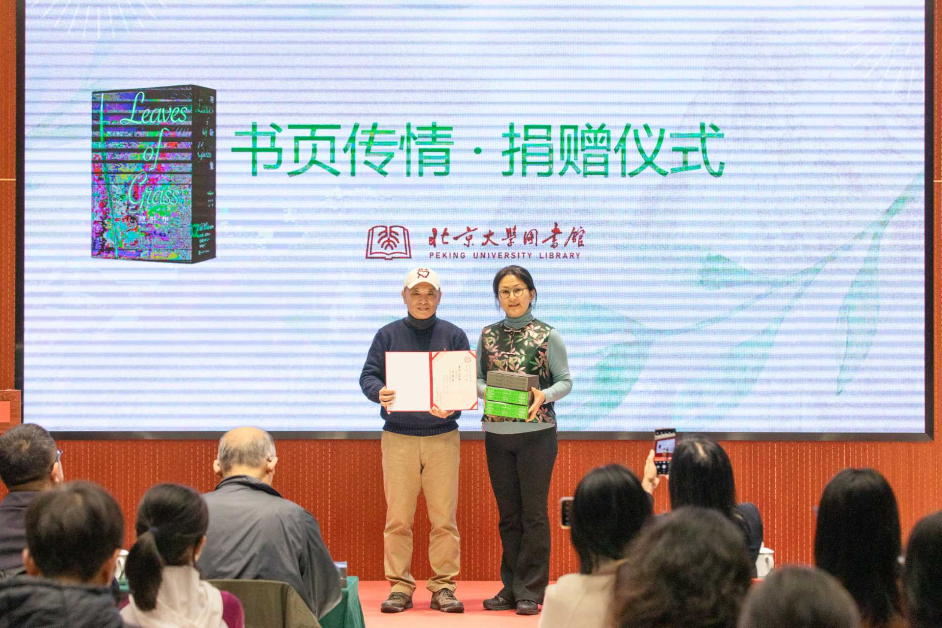 2025年11月7日下午,由北京大學(xué)圖書館、校友工作辦公室、校友會與人民文學(xué)出版社聯(lián)合主辦的“新書領(lǐng)讀:永遠的惠特曼,長青的《草葉集》——新書捐贈分享會暨插圖攝影展”活動在北京大學(xué)圖書館藝術(shù)鑒賞廳舉行。