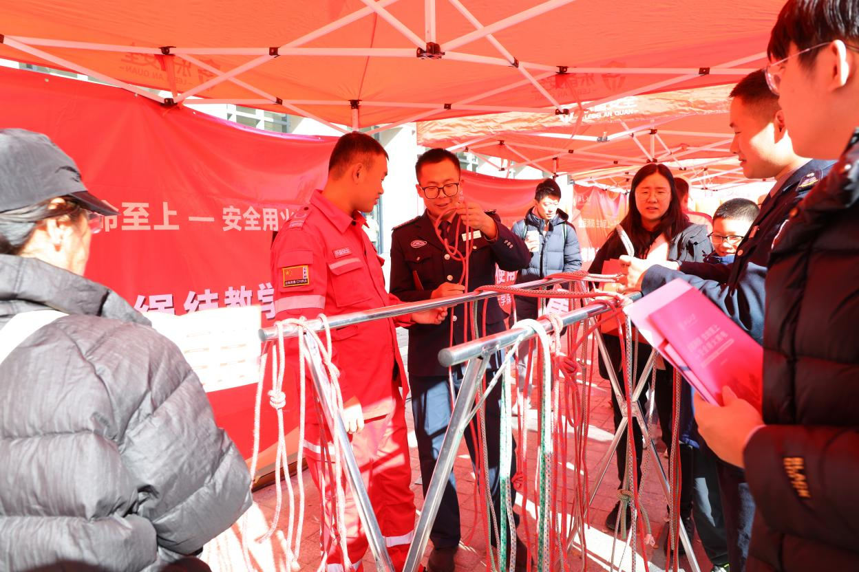活動(dòng)現(xiàn)場共設(shè)置了包括消防知識(shí)答題、模擬煙霧逃生、消防隱患VR排查、滅火毯與滅火器使用教學(xué)、救援繩結(jié)教學(xué)、AED操作培訓(xùn)、模擬電瓶車起火演示、廚房油鍋起火撲滅系統(tǒng)體驗(yàn)、燃?xì)馀c粉塵爆炸演示、模擬觸電體驗(yàn)以及實(shí)驗(yàn)室安全宣傳等在內(nèi)的16個(gè)項(xiàng)目體驗(yàn)區(qū)。大家借助消防VR互動(dòng)體驗(yàn)、模擬煙霧逃生等沉浸式項(xiàng)目,學(xué)習(xí)滅火器的規(guī)范操作,掌握火場逃生技巧,并熟練運(yùn)用AED等急救技能。各體驗(yàn)區(qū)高度還原真實(shí)火災(zāi)場景與突發(fā)緊急狀況,為參與者營造身臨其境的學(xué)習(xí)環(huán)境,助力師生有效掌握消防安全知識(shí)與應(yīng)對技能。