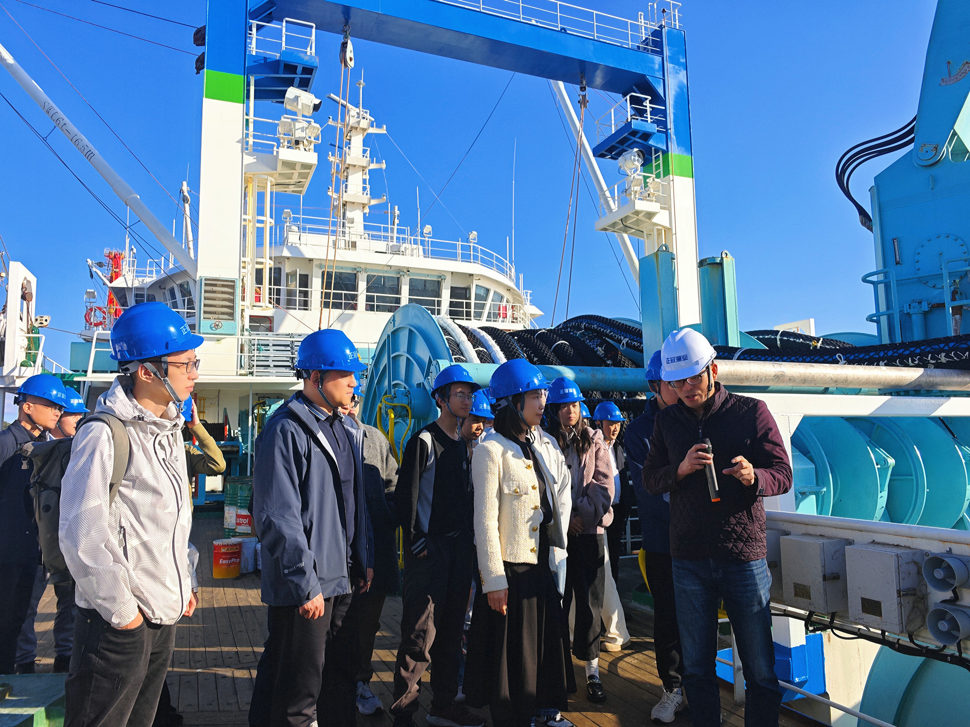 11月21日下午,實踐團赴馬尾船政工業(yè)園區(qū)、福州(連江)國家遠洋漁業(yè)基地進行參訪交流。在船政廠船塢內(nèi),7500車位LNG雙燃料滾裝船等多種高端船舶正緊張建造,支撐著深遠海養(yǎng)殖、海上風電等產(chǎn)業(yè)集群發(fā)展。從百年船政開創(chuàng)中國近代造船業(yè),到如今打造“萬噸巨輪”的硬核實力,師生們深切感悟到民族工業(yè)從“跟跑”到“并跑”的奮進歷程,以及裝備制造背后的“大國重器”擔當。實踐團來到福州馬祖產(chǎn)業(yè)合作園區(qū),深入了解園區(qū)在深化兩岸融合、構(gòu)建現(xiàn)代化海洋產(chǎn)業(yè)體系方面的創(chuàng)新實踐。師生們登臨中國自主設(shè)計建造的最大南極磷蝦 專業(yè)捕撈加工船“福遠漁9199”輪,實地考察其先進的連續(xù)泵吸捕撈系統(tǒng)和自動化加工生產(chǎn)線,切身感受海洋裝備制造與遠洋漁業(yè)領(lǐng)域的創(chuàng)新活力,對“向海圖強”戰(zhàn)略在地方的生動實踐有了更直觀的認識。