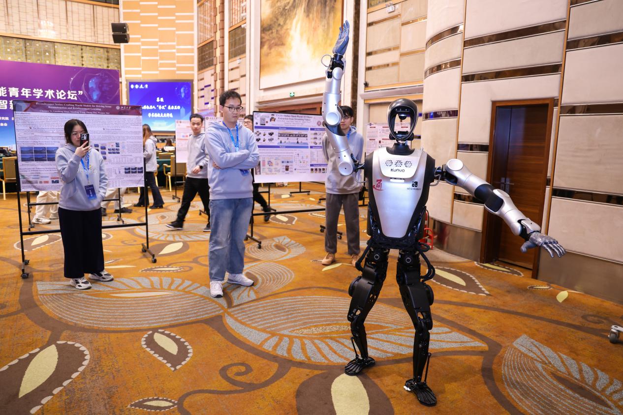 論壇還設置了學術海報展示與大眾投票環(huán)節(jié)。由北京通用人工智能研究院與樂聚機器人聯(lián)合研發(fā)的全尺寸人形機器人“夸父”也在現(xiàn)場亮相,其靈活的動作和智能交互引發(fā)現(xiàn)場陣陣贊嘆,生動詮釋了科技創(chuàng)新的魅力。