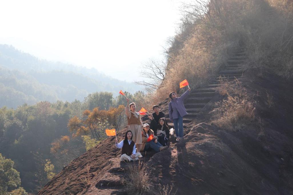 團(tuán)員青年在調(diào)研中于青嶂山巔唱支山歌給黨聽(tīng)