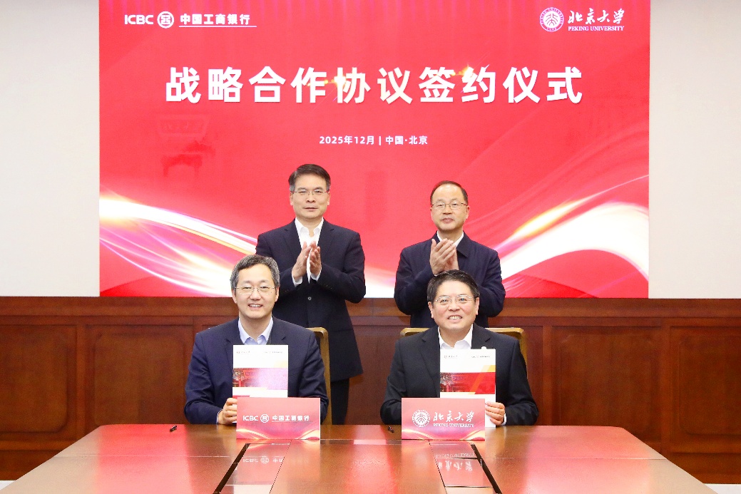 董志勇、張守川代表雙方簽署《北京大學(xué)-中國工商銀行戰(zhàn)略合作協(xié)議》。根據(jù)協(xié)議,雙方將共同積極推動在優(yōu)化育人體系、建設(shè)世界一流師資隊伍、加強國內(nèi)國際交流合作、強化改革創(chuàng)新等領(lǐng)域合作。
