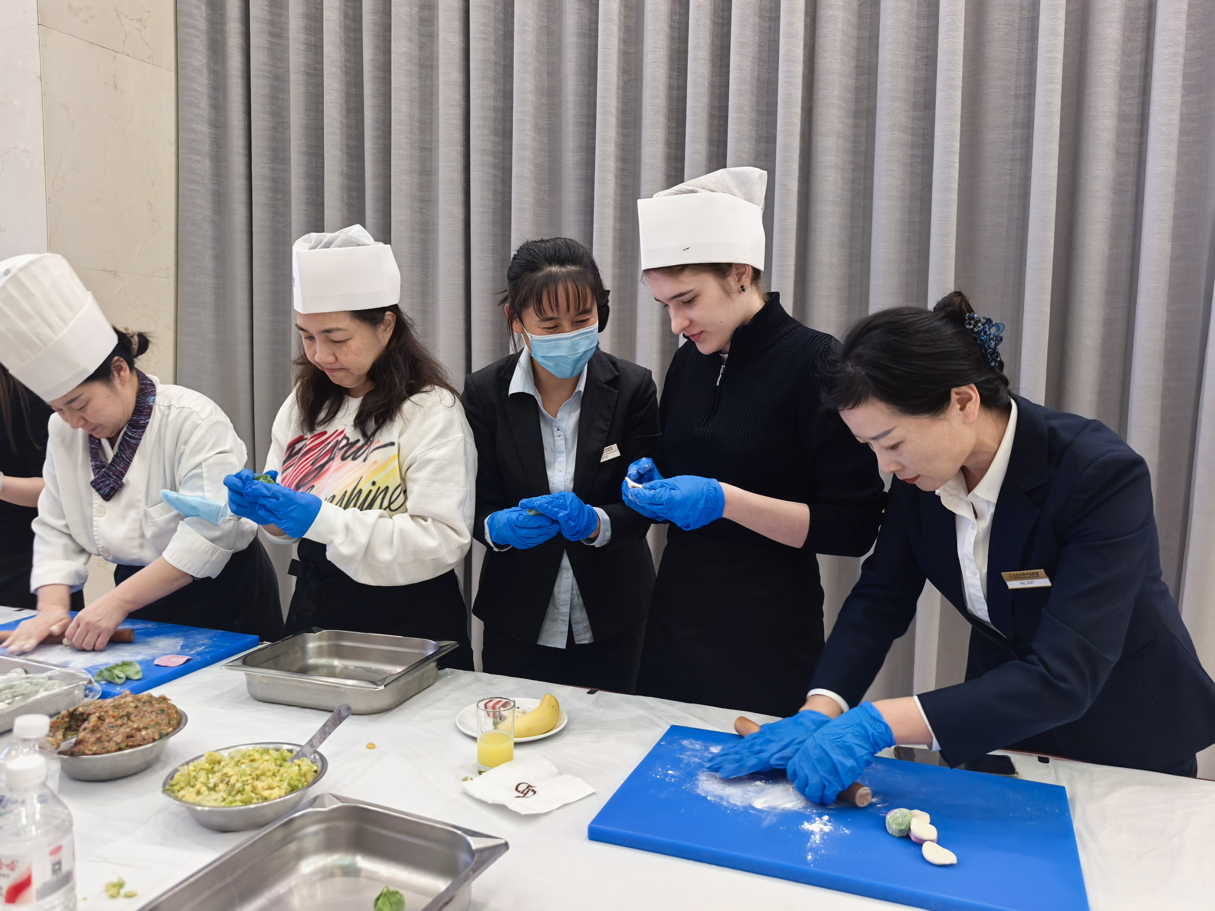 在專(zhuān)業(yè)廚師細(xì)致演示后,同學(xué)們紛紛動(dòng)手,興致盎然地投入和面、搟皮、調(diào)餡等包餃子的全過(guò)程中。從捏出細(xì)膩的褶紋到將餃子塑成飽滿(mǎn)的“元寶”,每一步都專(zhuān)注而投入。餃子里包進(jìn)的不僅是餡料,更是團(tuán)圓的文化寓意與手作的純粹樂(lè)趣,F(xiàn)場(chǎng)笑語(yǔ)不斷,暖意融融,洋溢著如家一般的溫馨氛圍。