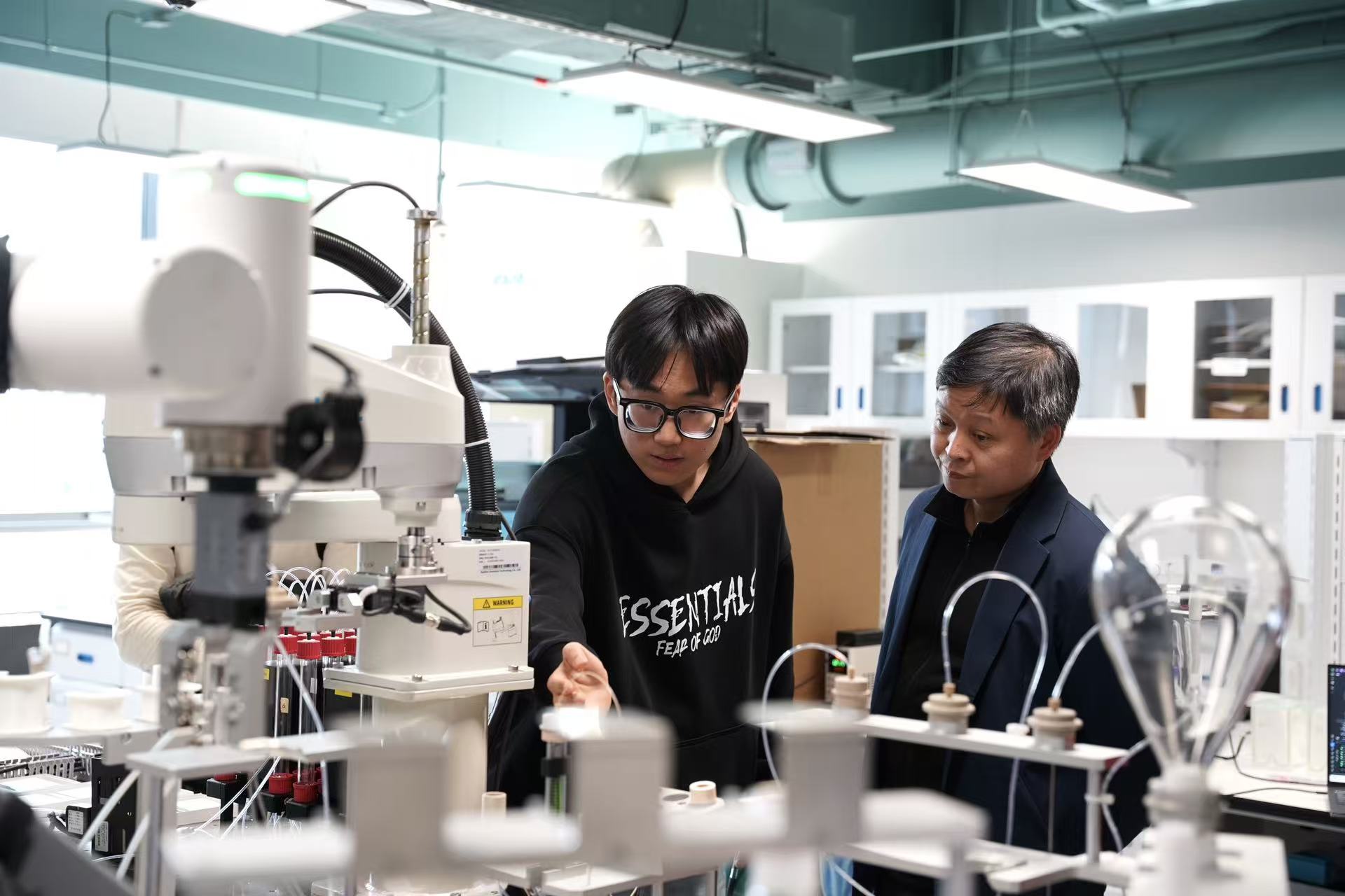 調(diào)研團(tuán)在新材料學(xué)院參觀了新能源材料設(shè)計(jì)與計(jì)算、光電材料器件等實(shí)驗(yàn)室,先進(jìn)的自動化設(shè)備給師生留下深刻印象。