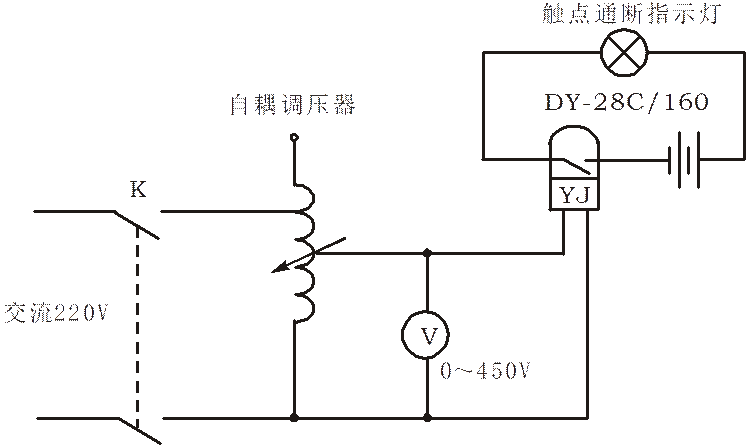 c、按圖1--3接線,調(diào)節(jié)自耦調(diào)壓器,增大輸出電壓,先對繼電器加100伏電壓,然后逐步降低電壓,至繼電器舌片開始跌落時的電壓稱為動作電壓Udj,再升高電壓至舌片開始被吸上時的電壓稱為返回電壓Ufj,將所取得的數(shù)值記入表1-3并計算返回系數(shù)。返回系數(shù)Kf為: