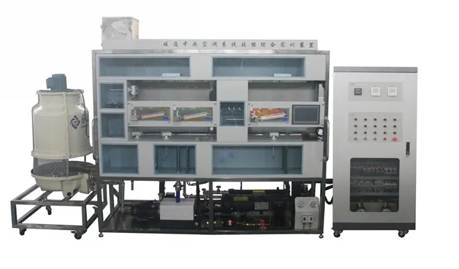 實(shí)訓(xùn)對(duì)象平臺(tái)采用不銹鋼架制成,系統(tǒng)由制冷機(jī)組、冷卻水系統(tǒng)、冷凍水系統(tǒng)、集中式中央空調(diào)系統(tǒng),半集中式中央空調(diào)系統(tǒng)等組成。