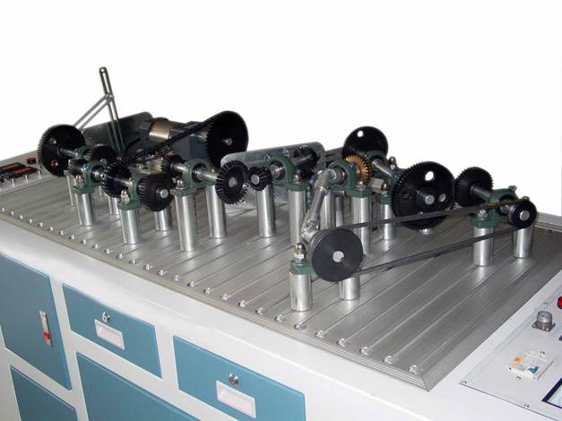 電機、鏈輪、鏈條、帶輪、V帶、直齒圓柱齒輪一對、斜齒圓柱齒輪、錐齒圓柱齒輪、蝸輪蝸桿、萬向節(jié)聯(lián)軸器、軸承支撐架、軸承、T型螺釘、安裝工具和測量工具等。