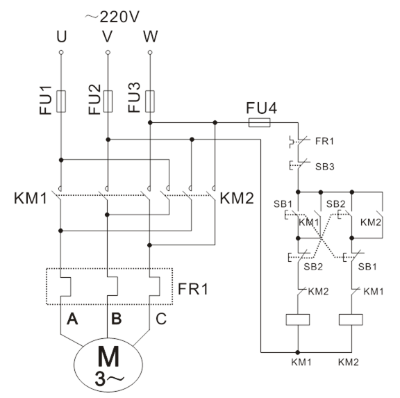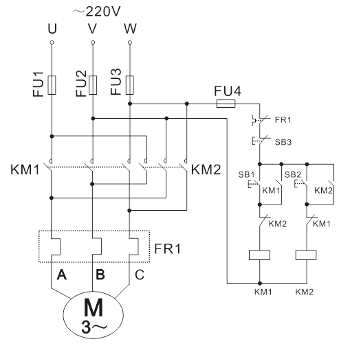 3、按鈕聯(lián)鎖正反轉控制線路: