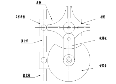 機(jī)構(gòu)說(shuō)明:槽輪機(jī)構(gòu)動(dòng)力性能較差,但若將一個(gè)導(dǎo)桿機(jī)構(gòu)串聯(lián)在槽輪的機(jī)構(gòu)之前,則可改善槽輪機(jī)構(gòu)的動(dòng)力性能。圖1 槽輪機(jī)構(gòu)
