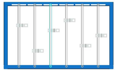 實(shí)驗(yàn)臺(tái)機(jī)架如圖2所示:機(jī)架中有5根鉛垂的活塞桿,它們可沿X軸左右移動(dòng),固定靠六角頭螺釘和蝶型螺母固定。需移動(dòng)時(shí)請(qǐng)先將蝶型螺母松開(kāi),雙手推動(dòng)活塞桿.并盡可能使它保持垂直狀態(tài);钊麠U上的滑塊可沿Z軸上下移動(dòng),用內(nèi)六角螺釘將滑塊緊定在活塞桿上。(注意:在移動(dòng)立柱或滑塊時(shí)需用直尺或卷尺量出它們的相對(duì)位置再把螺釘擰緊。)