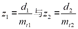 假設(shè)兩輪的端面模數(shù)分別為mt1與mt2,分度圓直徑分別為d1與d2,則兩輪齒數(shù)分別為