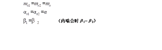 一對(duì)外嚙合斜齒圓柱齒輪的正確嚙合條件是:齒輪副的法面模數(shù)和法面壓力角分別相等,而且螺旋角大小相等,旋向相反,即