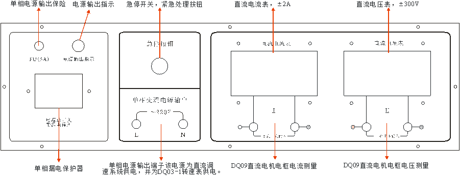 圖1-1 鋁質面板各部分說明示意圖2.小容量晶閘管直流調速系統(tǒng)面板
