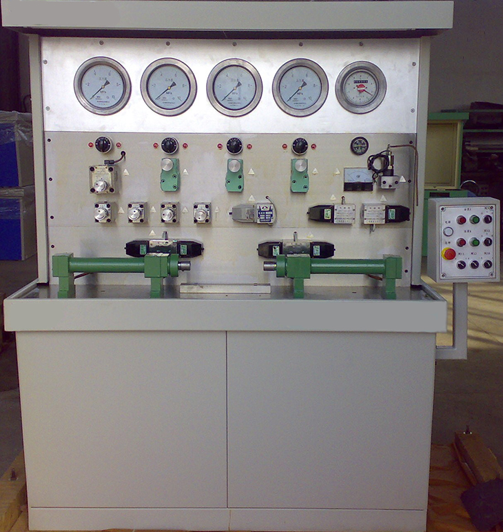 4、設(shè)備以機(jī)床標(biāo)準(zhǔn)制造,貼近工業(yè)實(shí)際,兩只對(duì)頂加載油缸用螺釘固定于鑄鐵臺(tái)面上,實(shí)現(xiàn)雙油缸對(duì)頂加載,實(shí)驗(yàn)壓力可到7Mpa,臺(tái)面上設(shè)集油裝置,避免油液外漏。