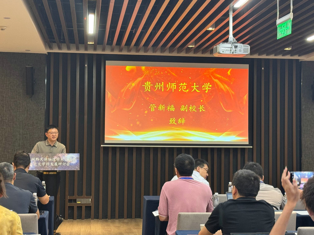 管新福在致辭中介紹了貴州師范大學(xué)的總體情況,對中國科學(xué)技術(shù)大學(xué)、廈門大學(xué)、貴州大學(xué)等高校的領(lǐng)導(dǎo)和專家長期以來對貴州師范大學(xué)天文學(xué)科的建設(shè)提供的大力幫助表示感謝,希望通過本次會議的召開,匯聚各方智慧,共同探討天文學(xué)學(xué)科建設(shè)、本科及研究生人才培養(yǎng)以及前沿科學(xué)研究等熱點問題,促進(jìn)學(xué)科交叉融合,激發(fā)創(chuàng)新思維,為三省區(qū)乃至國家的天文事業(yè)和社會發(fā)展貢獻(xiàn)力量。