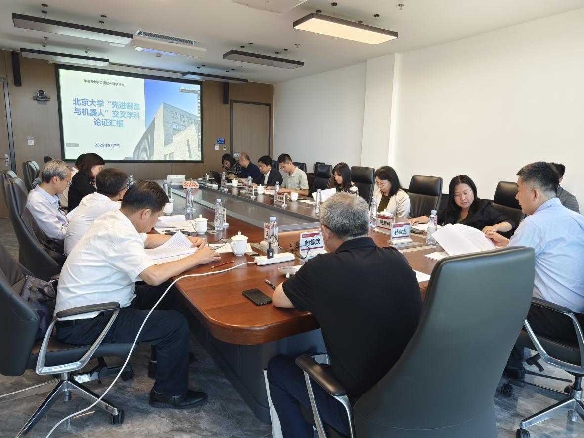 2025年9月7日,北京大學(xué)自主設(shè)置“先進制造與機器人”博士學(xué)位授權(quán)交叉學(xué)科學(xué)位點專家論證會在新奧工學(xué)大樓4047會議室召開。會議邀請了包括4位院士在內(nèi)的9位相關(guān)領(lǐng)域?qū)<覔?dān)任論證會專家,他們是中國工程院院士、浙江大學(xué)工學(xué)部主任楊華勇教授,中國工程院院士、重慶大學(xué)校長王樹新教授,中國工程院院士、北京航空航天大學(xué)學(xué)術(shù)委員會副主任向錦武教授,中國科學(xué)院院士、北京大學(xué)工學(xué)部主任段慧玲教授,中國機械科學(xué)研究總院集團有限公司黨委書記、董事長王德成研究員,清華大學(xué)航天航空學(xué)院李俊峰教授,北京理工大學(xué)機械與車輛學(xué)院院長席軍強教授,西安交通大學(xué)人工智能學(xué)院黨委書記蘭旭光教授,西安理工大學(xué)自動化與信息工程學(xué)院劉丁教授。論證會專家組組長由楊華勇?lián)。北京大學(xué)副校長、中國科學(xué)院院士樸世龍出席論證會并致辭。研究生院副院長徐明主持會議。