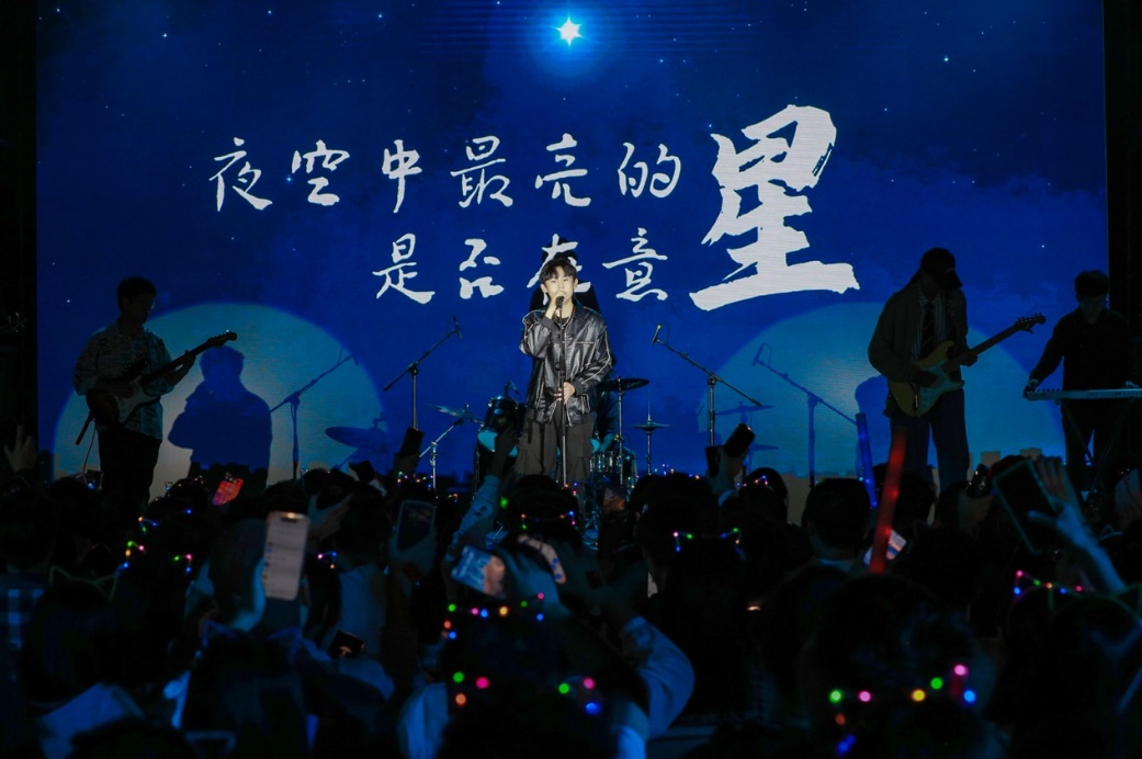 青春歌曲和經(jīng)典曲目的薈萃交融:《青春大概》《夜空中最亮的星》或青澀懵懂,或溫柔堅定,展示了追夢路上永不服輸?shù)尿湴僚c勵志,觀眾們一起揮舞手中的熒光棒、跟隨著歌手哼唱,倍感幸福充實!督裉臁贰洞和パ贰缎腋?燔嚒返冉(jīng)典歌曲更承載著北大學子對音樂與美的熱忱追求,為師生帶來一場視聽盛宴。