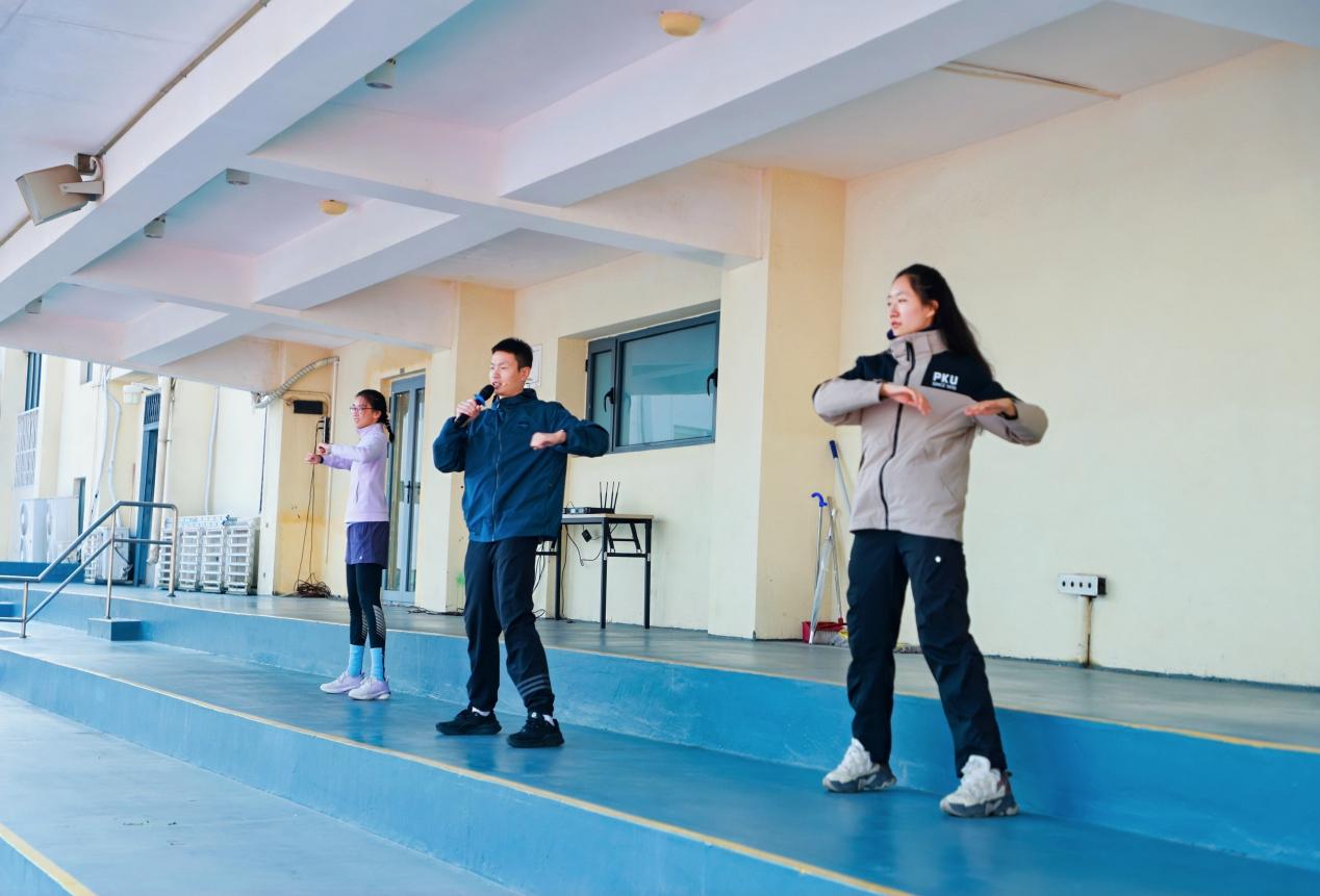 體育教研部教師車磊與北大健美操隊隊員鄭佳宸、周石溪帶領(lǐng)全場人員進行賽前熱身。熱身結(jié)束后,參賽人員繞操場慢跑一圈,為越野跑拉開溫暖而有力的序幕。