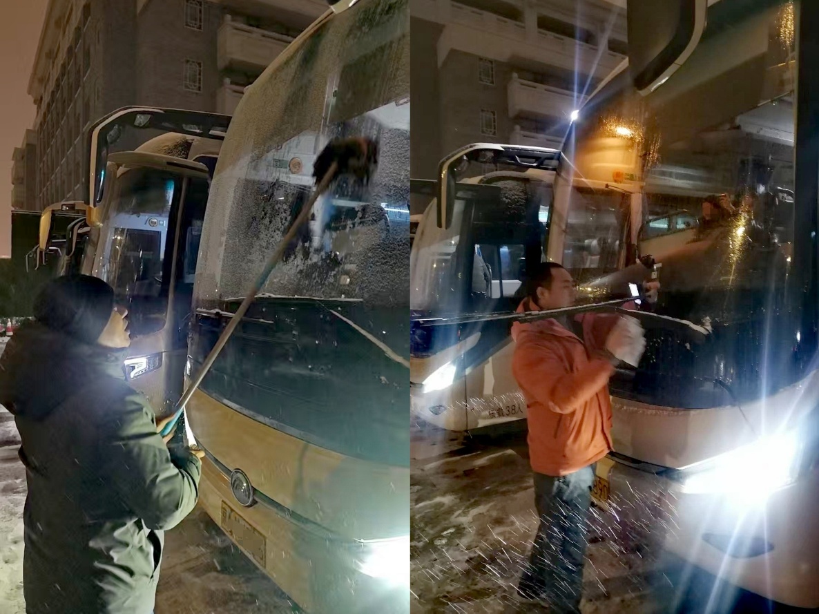 面對低溫和動態(tài)雪情,校園服務中心持續(xù)加強動態(tài)巡查與應急保障,為師生筑起安全防線。教學樓前,保潔人員及時清理門前積雪積冰,鋪設防滑地墊,擦拭地面水漬。交通線上,車隊全面檢查車輛性能,優(yōu)化冰雪天氣行車路線,加強駕駛員安全培訓,落實低速緩行等措施,全力保障出行安全。中心還積極支持校團委、愛心社等開展掃雪勞動實踐,提供工具與專業(yè)指導,推動服務保障與勞動育人相融合,師生攜手共建安全、整潔、溫暖的校園環(huán)境。