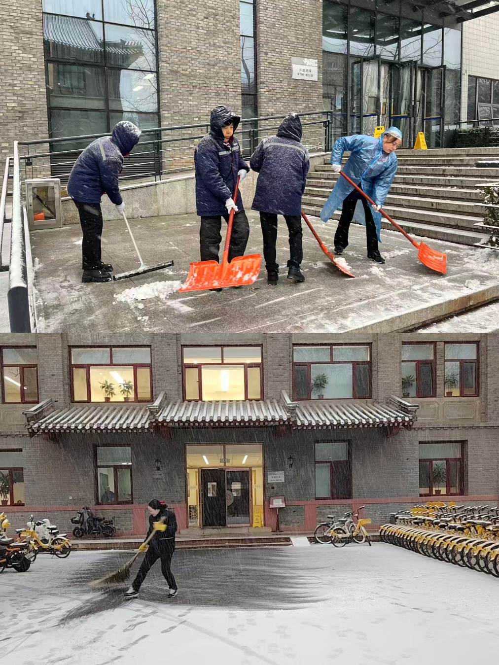 清掃公共教學樓門前積雪