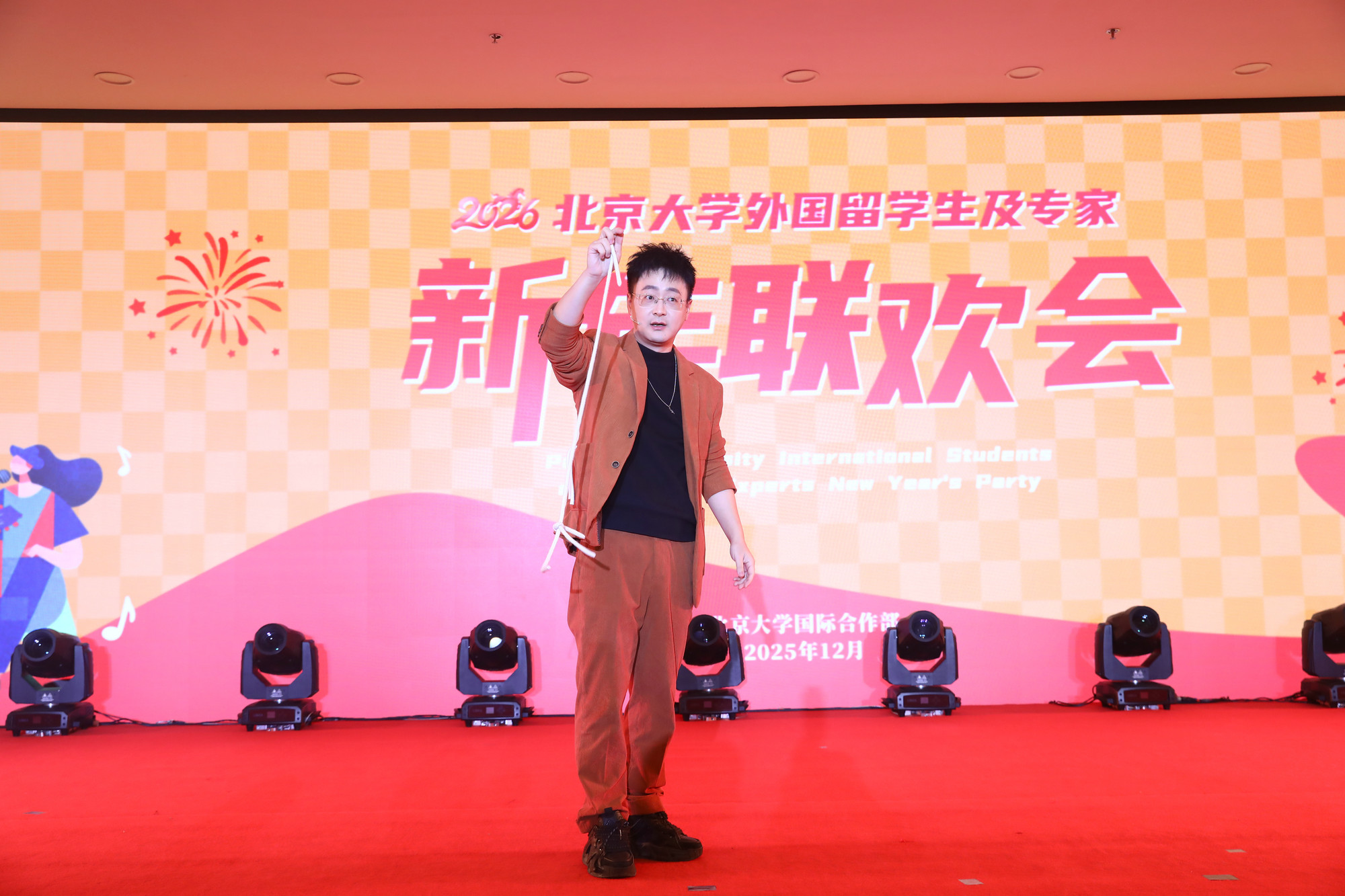 2025-12-22 08:1412月18日晚,北京大學(xué)外國(guó)留學(xué)生及專家2026年新年聯(lián)歡會(huì)在中關(guān)新園群英宴會(huì)廳舉行。校黨委書記、校務(wù)委員會(huì)主任何光彩,黨委常委、副校長(zhǎng)方方出席聯(lián)歡會(huì),與來自全球各地的350余名外國(guó)留學(xué)生、專家學(xué)者、校友代表和校內(nèi)外各界嘉賓歡聚一堂,暢敘情誼,共話未來。