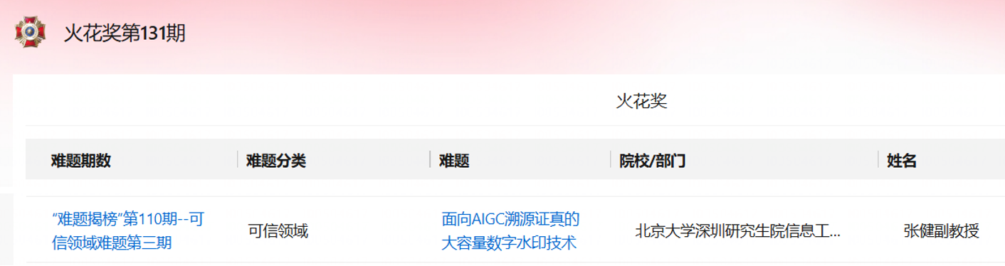 難題牽引,技術(shù)破局。張健針對(duì)第110期“難題揭榜”-可信領(lǐng)域第三期-難題5“面向AIGC溯源證真的大容量數(shù)字水印技術(shù)”,提出一套自主研發(fā)的水印技術(shù)方案,融合了高壓縮率信息編碼與大容量可逆隱寫技術(shù),有效提升了信息嵌入的密度與隱蔽性,各項(xiàng)性能均滿足全部技術(shù)指標(biāo)要求。