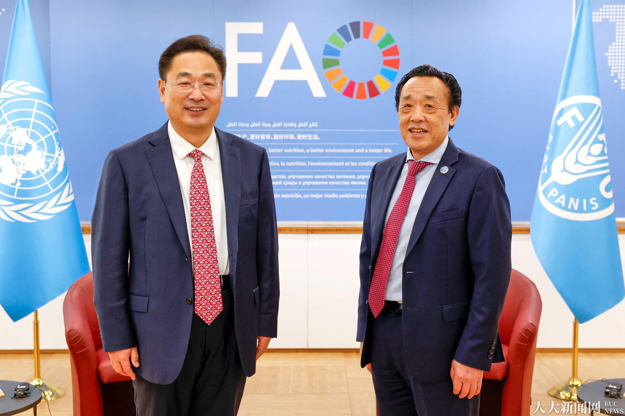 訪問意大利期間,朱信凱率團訪問聯(lián)合國糧農(nóng)組織總部,與總干事屈冬玉會晤,圍繞學術交流、人才培養(yǎng)、南南合作及全球糧農(nóng)體系轉型等領域進行深入交流。朱信凱介紹了中國人民大學在積極參與全球糧農(nóng)治理、主動培育全球治理人才等工作成效,并表示學校始終以建構中國農(nóng)林經(jīng)濟管理學科自主知識體系為己任,發(fā)布三農(nóng)學等重大研究成果,形成了“學術交流—成果發(fā)布—政策建言”三位一體的全球糧農(nóng)治理參與模式。希望雙方進一步深化在氣候智能型農(nóng)業(yè)、數(shù)字農(nóng)業(yè)、可持續(xù)糧食體系等前沿領域的學術合作,拓寬青年人才交流渠道,不斷提升中國青年參與全球事務的能力以及在全球治理事業(yè)中的影響力。屈冬玉高度肯定中國人民大學在農(nóng)林經(jīng)濟管理研究領域的學術地位和國際影響力,希望學校繼續(xù)發(fā)揮高校智庫力量,培育更多有志于從事全球糧農(nóng)治理的復合型人才,為全球糧食安全體系建設發(fā)揮積極作用。