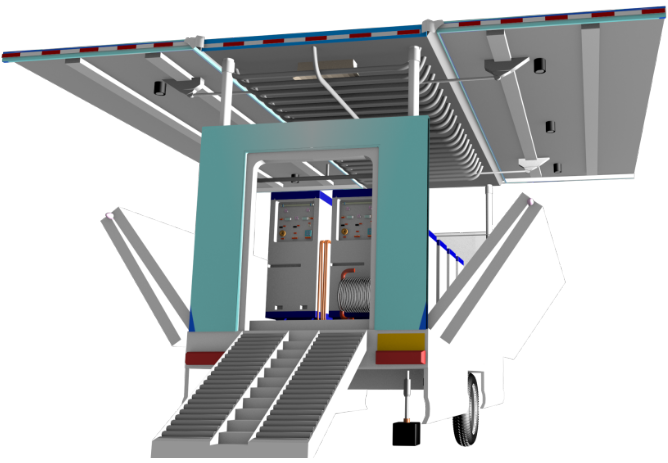 車(chē)體展開(kāi)后實(shí)訓(xùn)平臺(tái)的面積可以達(dá)到70平方米,可以滿足預(yù)定專(zhuān)業(yè)20多人的培訓(xùn)需求。